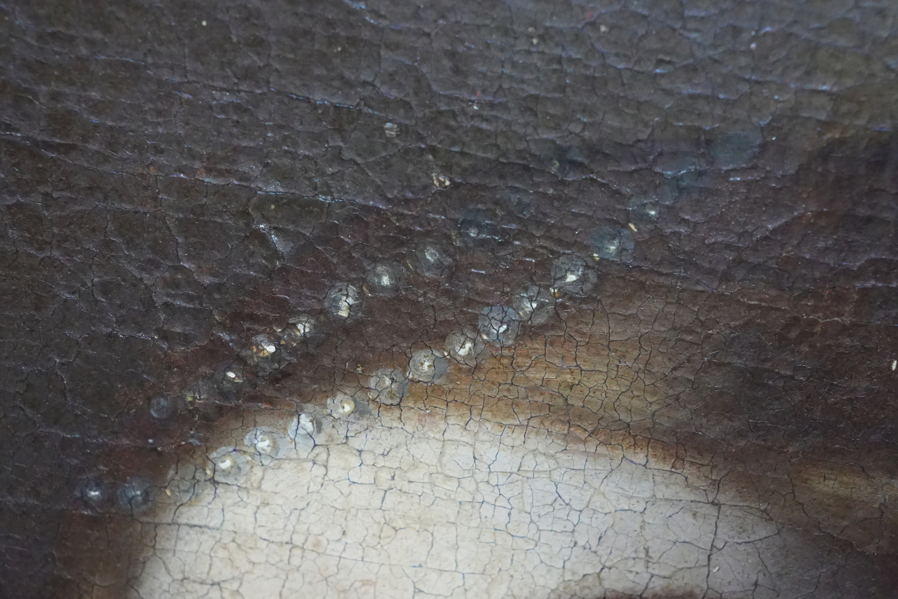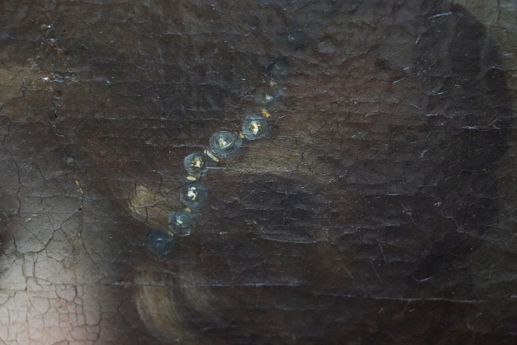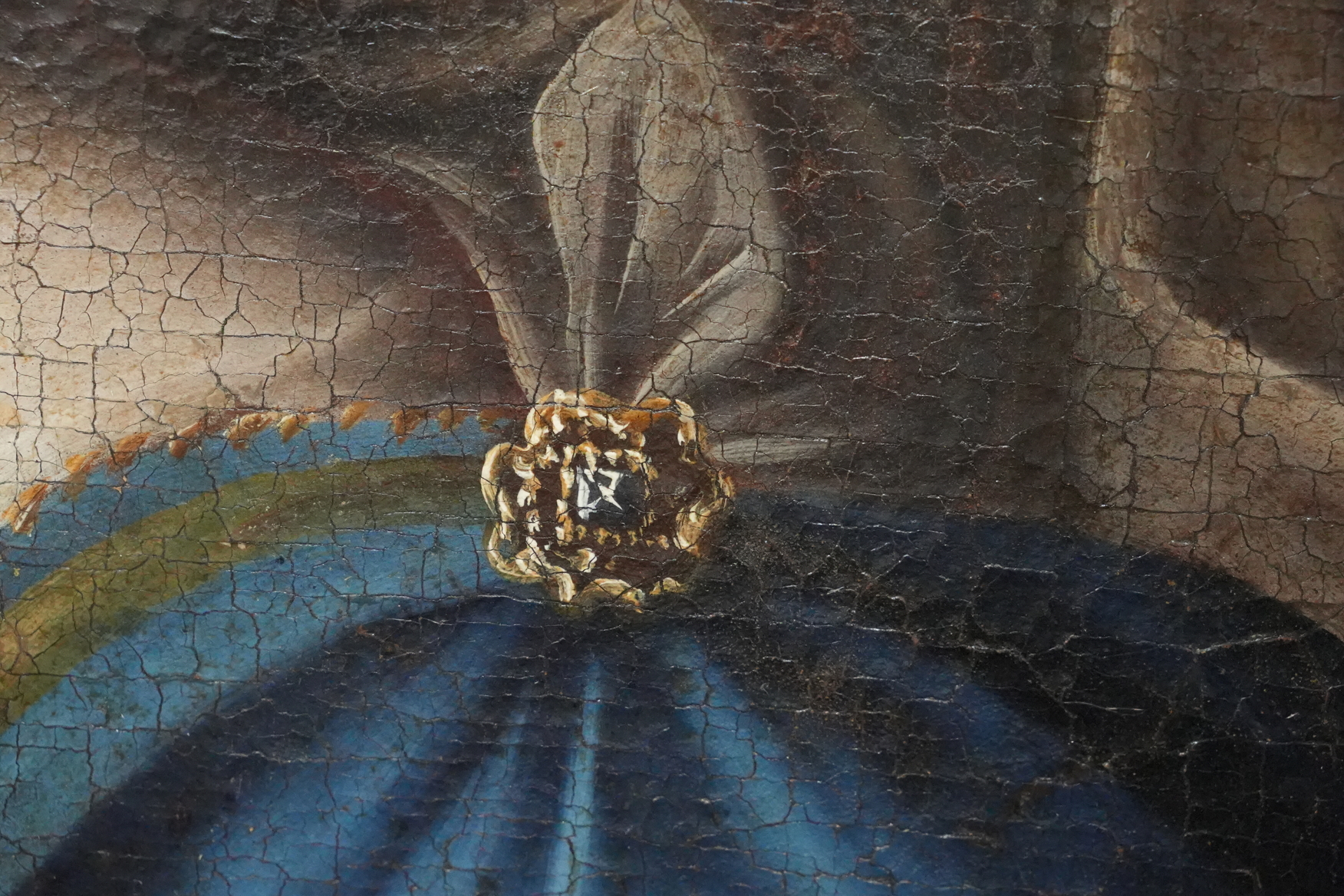 Per comprendere il bottone gioiello rappresentato in questo quadro, approfondiamo la storia del bottone il cui nome deriva dal francese bouton che significa germoglio o bocciolo. Le prime testimonianze di bottoni si trovano nella civiltà dell'Indo, intorno al 2700 a.C. dove i bottoni erano usati come ornamenti personali o come simboli di status sociale. Successivamente, i bottoni gioiello si diffusero in altre culture, come quella egizia, greca, romana, cinese e indiana, dove venivano usati per decorare abiti, accessori o oggetti sacri. Nell’antica Roma erano usati i bottoni anche se la funzione di chiusura degli abiti, vesti e mantelli era affidata a lacci, fibule e spille. Bisogna attendere il Medioevo per avere una sempre maggiore diffusione del bottone divenendo, intorno al XIII secolo, un segno distintivo della nobiltà e del clero, che li indossavano per mostrare il loro potere e la loro ricchezza ed erano realizzati da orafi che li decoravano con motivi geometrici, floreali o animali. I bottoni gioiello erano anche associati a significati simbolici o religiosi, come la protezione, la fertilità o la salvezza. Nel Rinascimento e nel Barocco, il periodo in cui un anonimo pittore ha ritratto la nostra Salomé custodita nel Castello dei Principi Capano di Pollica, il bottone stava raggiungendo il suo apice artistico e stilistico, grazie all'influenza della cultura classica e all’arrivo di grandi quantità di oro e preziosi dalle Americhe, divenendo sempre più espressione di benessere. I bottoni gioiello erano usati per abbellire gli abiti dei sovrani, nobili e potenti che li sfoggiavano in occasioni pubbliche o private. Lo stesso Re Sole fu un grande appassionato di bottoni gioiello. I bottoni gioiello erano anche espressione di gusto e di creatività, in quanto riflettono le mode e le tendenze del tempo. E di questi secoli sono i bottoni da profumo, i bottoni con immagini dipinte a smalto o rappresentati con micromosaico o cammei incisi o, ancora, i bottoni di porcellana. Un periodo di grande sfarzo, ricchezza e creatività. Nella seconda metà del Settecento e nell'Ottocento i bottoni gioiello subirono una crisi a causa delle rivoluzioni politiche e sociali che cambiarono il costume e la moda. I bottoni gioiello divennero meno appariscenti e più sobri, in linea con lo stile neoclassico e romantico e nell’Ottocento, come tanti prodotti, si avviò anche alla loro produzione industriale. Nel Novecento e nel Duemila, i bottoni gioiello sono tornati in auge grazie al rinnovamento dell'arte e della moda. I bottoni gioiello furono reinterpretati in chiave moderna e contemporanea da stilisti come Coco Chanel, Christian Dior, Yves Saint Laurent e Gucci, che li trasformarono in elementi di stile e di personalizzazione. I bottoni gioiello sono stati anche scelti e ripresi nella attualità da star come Madonna, Lady Gaga e Beyoncé, che li hanno resi parte del loro look unico e inconfondibile.